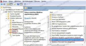 İlk pencere geri dönünce sol taraftan Kullanıcı Yapılanırması -> Yönetim Şablonları ->Sistem‘e tıklayın. Sağ tarafta gelen seçeneklerden Yalnızca belirtilen Windows uygulamalarını çalıştır‘a çift tıklayın.